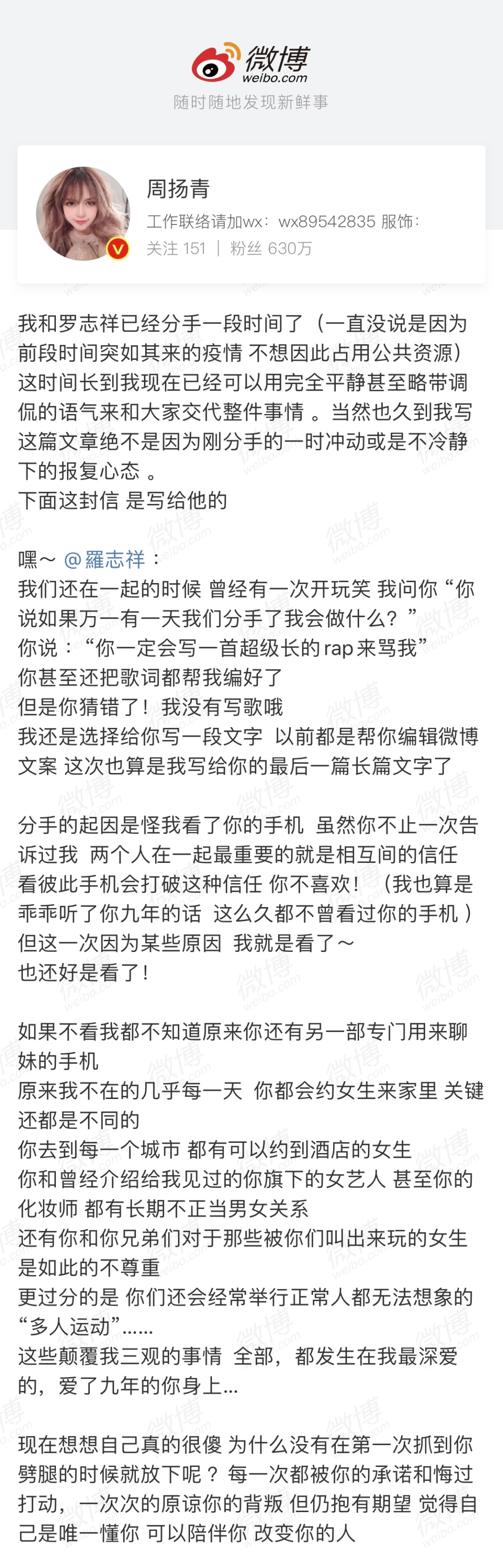 周揚青分手文 / Oxi7ag8c1lkgom / 周揚青分手信全文: 嘿~ @羅志祥 : 我們還在一起的時候 曾經有一次開玩笑 我問你 「你說如果萬一有一天我們分手了我會做什麼?. 周揚青分手信全文: 嘿~ @羅志祥 : 我們還在一起的時候 曾經有一次開玩笑 我問你 「你說如果萬一有一天我們分手了我會做什麼?